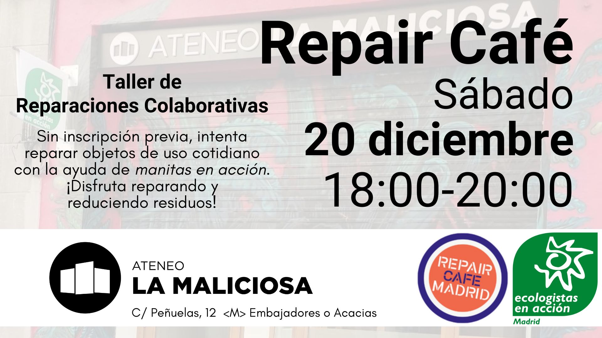 Por necesidades de Matadero, no tendremos Repair Café allí durante las Navidades. Volveremos el sábado 10 de enero de 2026.